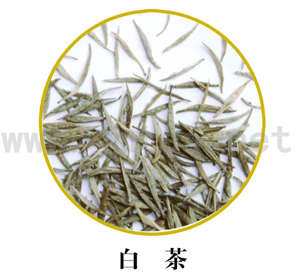 常选用芽叶上的白茸毛多的品种制成,成品白茶满披白毫,形态自然, 汤色黄亮明净,其代表则有“银针白毫”、“寿眉”、“白牡丹”等。