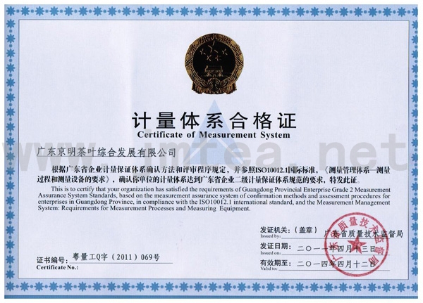 计量体系合格证书