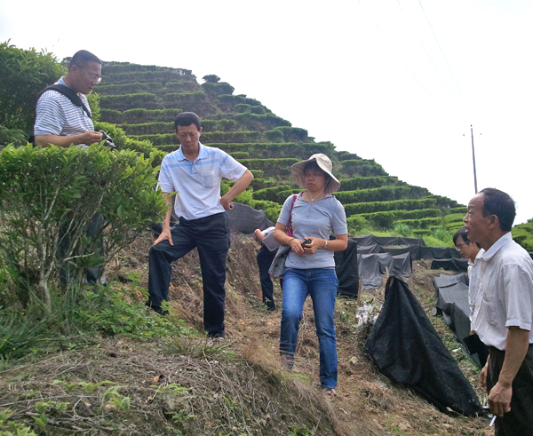 中农杭州有机茶认证中心检查员凌彩金,广东省农业科学院茶叶研究所有关领导和专家到我京明茶叶公司大北山有机茶基地进行现场检查和指导工作。  |