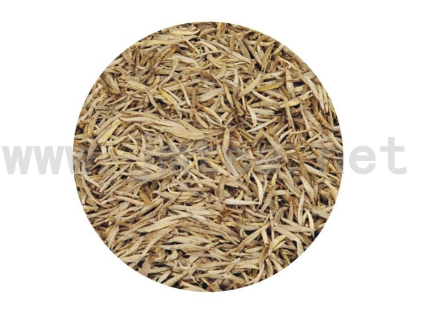 “淡扫明湖开玉镜,丹青画出是君山”(李白诗)。“遥望洞庭山水翠,白银盘里一青螺”(刘禹锡诗)。这是唐代两位大诗人对洞庭君山的抒情诗句。“玉镜嵌君山,银盘托青螺”,确是壮景奇观。君山和君山茶,历来结下不解之缘,清代万年谆诗云:“试把雀泉烹雀舌,烹来长似君山色。”君山,又名洞庭山,本身就是神山仙境的意思,历史上流传着许多神奇的传说。相传四千多年前舜帝南巡,不幸死于九疑山下,他的两个爱妃娥皇、女英奔丧,船到洞庭被风浪打翻,湖上飘来七十二只青螺,把她们托起聚成君山。爱妃南望茫茫湖水,扶竹痛哭,血泪染竹成斑,后人称为湘妃竹。“斑竹一枝干滴泪”,成了后世爱情忠贞的象征。因为她们是君妃,故把这里定名为君山。脍炙人口的柳毅传书的故事,也发生在君山。这里有柳毅井,井水烹茶酿酒,清香芬芳。还有龙涎井、飞来钟和用秦始皇的御玺盖的“封山”印。君山有大小七十二蜂,每个山峰都有一个名字,每个山峰都有异景奇观,每个景观又都有一段优美动听的故事。 君山所在的岳阳市,商称岳州。北宋范致明《岳阳风土记》中有关于邕湖茶的记述。清代袁枚《随园食单》记述:“洞庭君山出茶,色味与龙井相同,叶微宽而绿过之,采掇很少。”清代黄本骥《湖南方物志》全面记述了湖南产茶的概况,作者在记述岳州茶时,除引用《岳阳风土记》、《潇湘听雨录》、《随园食单》外,又引用《湖南省志》“巴陵君山产茶,嫩绿似莲心,岁以充贡”。 君山为湖南省洞庭湖中一个小岛,位于岳阳城西15公里处。岛上土壤肥沃,多砂质壤土,年平均温度16~17℃,年平均降水量1340毫米。3~9月间相对湿度约80%,春夏季湖水蒸发,云雾弥漫,岛上竹木丛生,生态环境适宜种茶。 君山银针采摘开始于清明前三天左右,直接从茶树上拣采芽头。为防止擦伤芽头和茸毛,盛茶篮内衬有白布。芽头要求长25~30毫米,宽3~4毫米,芽蒂长约2毫米,肥硕重实,一芽头包含三、四个已分化却未展开的叶片。雨天不采、露水芽不采、紫色芽不采、空心芽不采、开口芽不采、冻伤芽不采、虫伤芽不采、瘦弱芽不采、过长过短芽不采,即所谓 君山银针的“九不采”。 君山银针制造特别精细而又别具一格,分杀青、摊凉、初烘、初包、复烘、摊凉、发包、足火八道工序。历时三昼夜,长达70多小时之久。 杀青:在20度的斜锅中进行,锅子在鲜叶杀青前磨光打蜡,火温掌握“先高(100~120℃)后低(80℃)”,每锅投叶量300克左右。茶叶下锅后。两手轻轻捞起,由怀内向前推去,再上抛抖散,让茶芽沿锅下滑。动作要灵活、轻巧,切忌重力摩擦,防止芽头弯曲、脱毫、茶色深暗。约经4~5分钟,芽蒂萎软,青气消失,发出茶香,减重率达30%左右,即可出锅。 摊凉:杀青叶出锅后,盛于小蔑盘中,轻轻扬簸数次,散发热气,清除细末杂片。摊凉4~5分钟,即可初烘。 初烘:放在炭火炕灶上初烘,温度掌据在50~60℃,烘20~30分钟,至五成干左右。初烘程度要掌握适当,过干,初包闷黄时转色困难,叶色仍青绿,达不到香高色黄的要求;过湿,香气低闷,色泽发暗。 初包初烘叶稍经摊凉,即用牛皮纸包好,每包1.5公斤左右,置于箱内,放置40~43小时,谓之初包闷黄,以促使君山银针特有色香味的形成。为君山银针制造的重要工序。每包茶叶不可过多或过少,太多化学变化剧烈,芽易发暗,太少色变缓慢,难以达到初他的要求。由于包闷时氧化放热,包内温度逐升,24小时后,可能达30℃左右,应及时翻包,以使转色均勾。初包时间长短,与气温密切相关。当气温20℃左右,约40小时,气温低应当延长。当芽现黄色即可松包复烘。通过初包,银针品质风格基本形成。 复烘与摊凉:复烘的目的在于进一步蒸发水分,固定已形成的有效物质,减缓在复包过程中某些物质的转化。温度50℃左右,时间约一小时,烘至八成千即可。若初包变色不足,即烘至七成干为宜。下烘后进行摊凉。摊凉的目的与初烘后相同。 复包:方法与初包相问。历时20小时左右。待茶芽色泽金黄,香气浓郁即为适度。 足火:足火温度50~55℃,烘量每次约0.5公斤,焙至足干止。 加工完毕,按芽头肥瘦、曲直、色泽亮暗进行分组。以壮实、挺直、亮黄者为上;瘦弱、弯曲、暗黄者次之。 君山银针的贮藏十分讲究。将石膏烧熟捣碎,铺于箱底,上垫两层皮纸,将茶叶用皮纸分装成小包,放在上面,封好箱益。只要注意适时更换石膏,银针品质经久不变。 君出银针属芽茶,因茶树品种优良,树壮枝稀。芽头肥壮重实,每斤银针茶约2.5万个芽头。君山银针风格独特,岁产不多,质量超群,为我国名优茶之佼佼者。其芽头肥壮,紧实挺直,芽身金黄,满披银毫,汤色橙黄明净,香气清纯,滋味甜爽,叶底嫩黄匀;秒年亮。根据芽头肥壮程度,君山银针产品分特号、一号、二号三个档次。 用洁净透明的玻璃杯冲泡君山银针时,可以看到初初始芽尖朝上、蒂头下垂而悬浮于水面,随后缓缓降落,竖立于杯底,忽升忽降,蔚成趣观,最多可达三次,放君山银针有“三起三落”之称。最后竖沉于杯底、如刀枪林立,似群笋破土,芽光水色,浑然一体,堆绿叠翠,妙趣横生,历来传为美谈。且不说品尝其番味以饱口福,只消亲眼观赏番,也足以引人入胜,神清爽。根据“轻者浮,重者沉”的科学道理,“三起三落”是由于茶芽吸水膨胀和重量增加不同步。芽头比重瞬间变化而引起的。可以设想,最外一层芽肉吸水,比重增大即下降,随后茅头体积膨大,比重